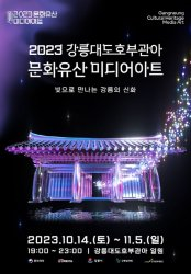 2023 강릉대도호부관아 문화유산 미디어아트는 천 년에 걸쳐 강릉을 지켜온 ‘강릉대도호부 관아’에서 미디어·디지털·IT기술을 활용하여 지역의 역사문화적 스토리를 소재로 한 감동적인 미디어아트 프로그램으로, 문화유산의 특성과 관련된 다양한 문화·예술·전시·체험 연계프로그램 행사다.